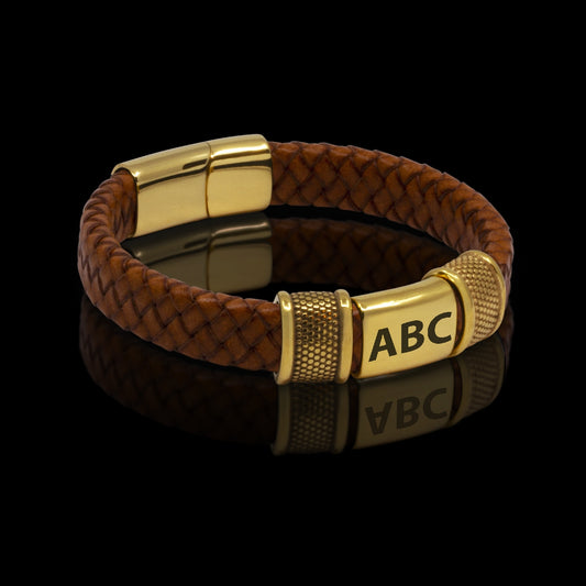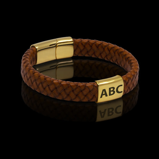 ARMBÅND LÆDER MED VALGFRI GRAVERING 3 INITIALER