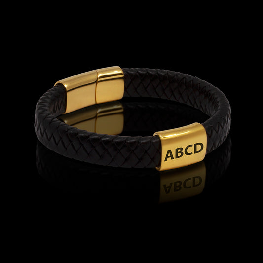 ARMBÅND LÆDER MED VALGFRI GRAVERING 4 INITIALER