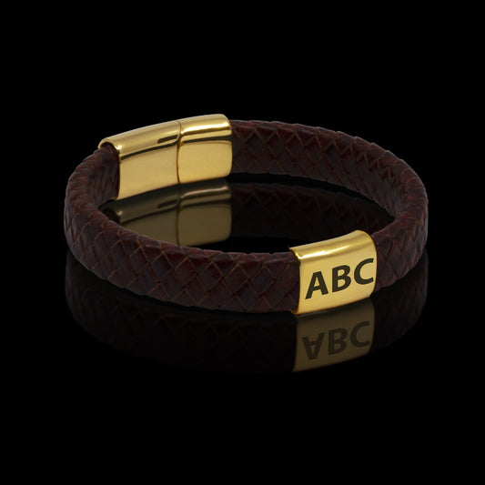 ARMBÅND LÆDER MED VALGFRI GRAVERING 3 INITIALER