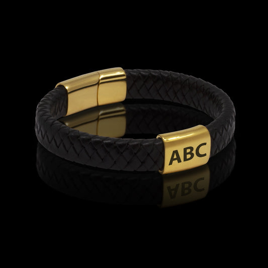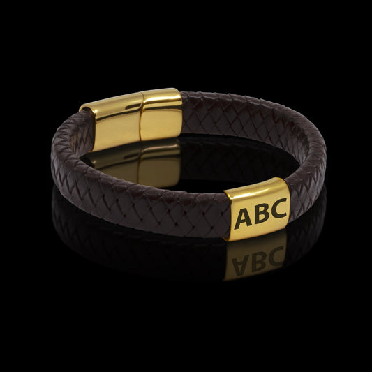 ARMBÅND LÆDER MED VALGFRI GRAVERING 3 INITIALER