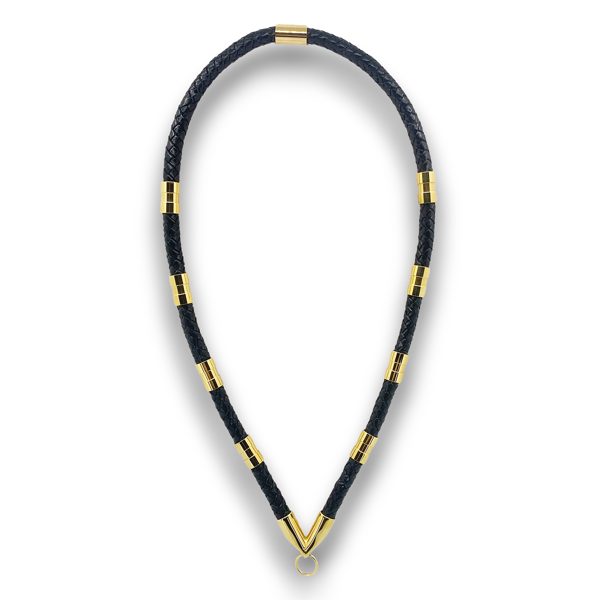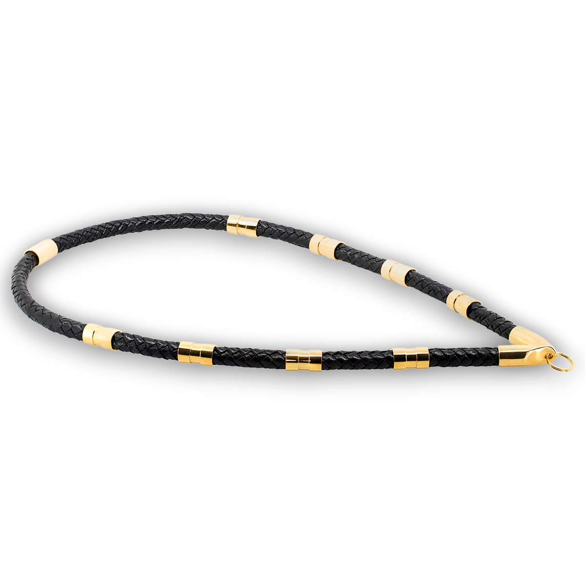 Lion Jewels Leather XL Halskæde. Halskæden er lavet i kraftig 10 mm sort Bolo flettet læder af kalveskind med forgyldte smykkeled, halskæden er forberedt for isætning af vedhæng. Splitringen til vedhæng kan fjernes.