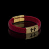 Lion Jewels Læder armbånd i Rød 12x6mm flettet Bolo kalveskinds læder med forgyldte Charms med kors og Lion Jewels magnetlås
