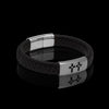 Lion Jewels Læder armbånd i Sort 12x6mm flettet Bolo kalveskinds læder med forsølvet Charms med kors og Lion Jewels magnetlås