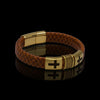 Lion Jewels Læder armbånd i Lys Brun 12x6mm flettet Bolo kalveskinds læder med forgyldte Charms med kors og Lion Jewels magnetlås