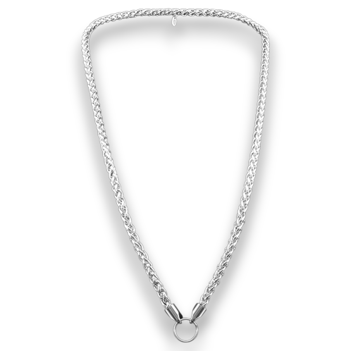 En Wheat (hvede) halskæde får sit navn fra det særlige flettemønster, der ligner toppe af et hvedeaks. Dette mønster er sammensat af ovalformede led, der er forbundet på en sådan måde, at det giver et intrikat, tekstureret udseende. Ædelstål giver denne type halskæde en blank, sølvfarvet finish, der er både moderne og tidløs. Wheat halskæder er kendt for deres fleksibilitet og komfort, hvilket gør dem velegnede til både daglig brug og til mere formelle lejligheder. Den detaljerede fletning fanger lyset smukt, hvilket skaber en subtil, men bemærkelsesværdig glans.