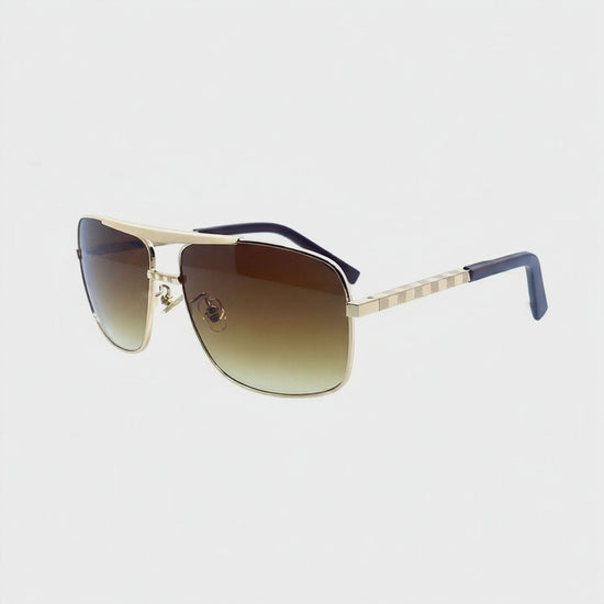 Lion Jewels - Solbrille model Vincent - Sort/Forgyldt Herrebrille med brunt glas. Glassene har UV400 filter.