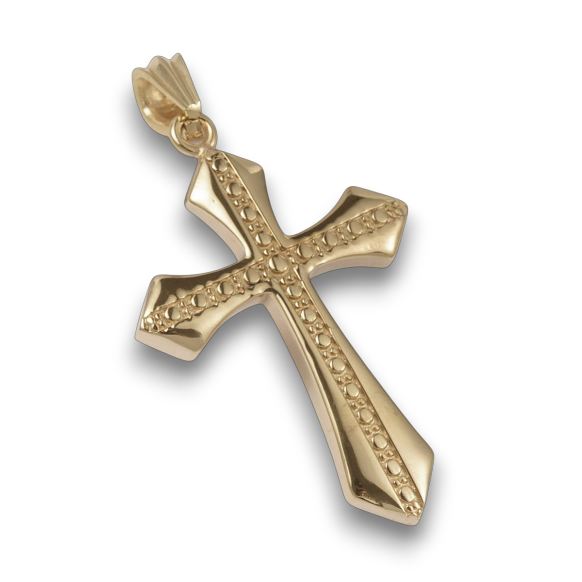 Vedhæng i forgyldt kirurgisk stål er belagt med et tyndt lag guld, hvilket giver et luksuriøst og varmt udseende. Guldoverfladen tilfører en rigdom og dybde, der gør smykket mere iøjnefaldende. Dette er en fremragende mulighed for dem, der ønsker et præg af traditionel smykkeæstetik kombineret med moderne materialer.