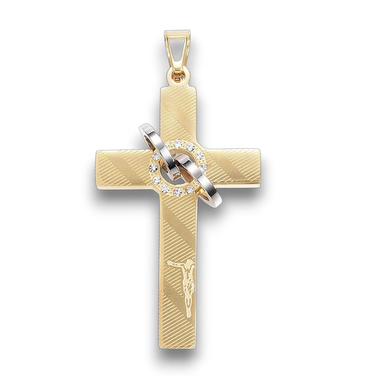 Vedhæng i forgyldt kirurgisk stål er belagt med et tyndt lag guld, hvilket giver et luksuriøst og varmt udseende. Guldoverfladen tilfører en rigdom og dybde, der gør smykket mere iøjnefaldende. Dette er en fremragende mulighed for dem, der ønsker et præg af traditionel smykkeæstetik kombineret med moderne materialer.