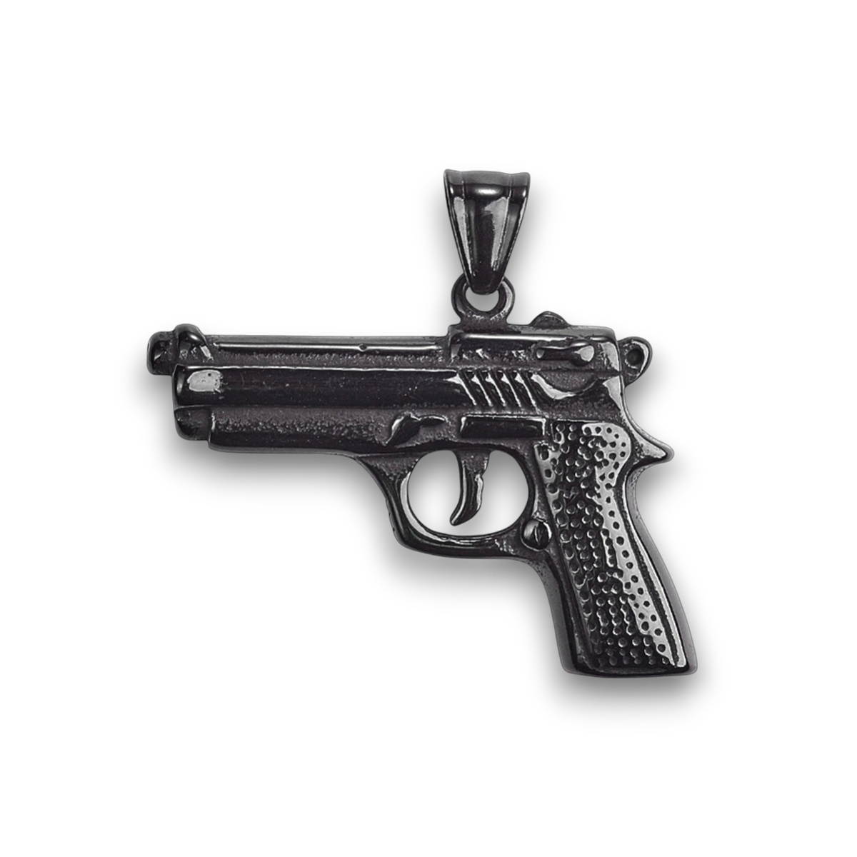 Gunmetal-finishen refererer til en mørkere, ofte næsten sort, belægning på kirurgisk stål, der giver et kraftfuldt og maskulint udseende. Denne type finish er populær for sin moderne og kantet æstetik. Gunmetal vedhæng er ideelle for dem, der ønsker at tilføje et moderne, stilfuldt element til deres tilbehør.