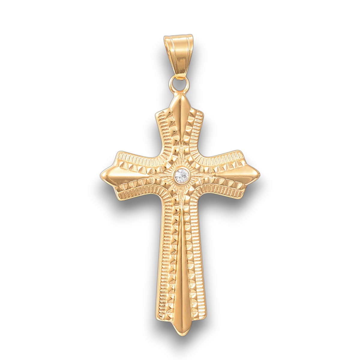 Vedhæng i forgyldt kirurgisk stål er belagt med et tyndt lag guld, hvilket giver et luksuriøst og varmt udseende. Guldoverfladen tilfører en rigdom og dybde, der gør smykket mere iøjnefaldende. Dette er en fremragende mulighed for dem, der ønsker et præg af traditionel smykkeæstetik kombineret med moderne materialer.