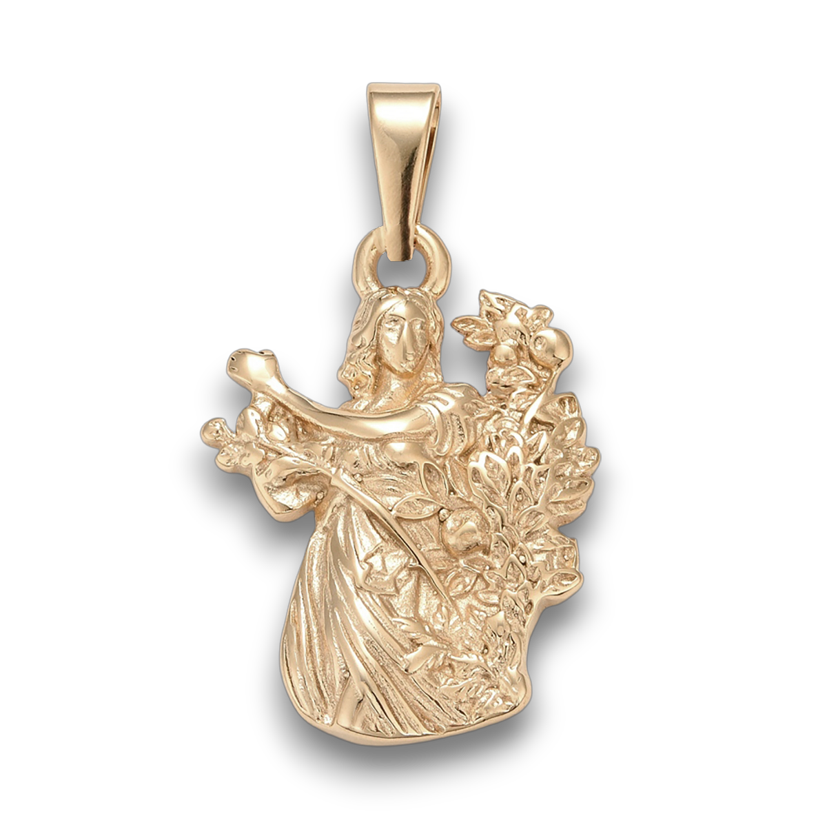 Vedhæng i forgyldt kirurgisk stål er belagt med et tyndt lag guld, hvilket giver et luksuriøst og varmt udseende. Guldoverfladen tilfører en rigdom og dybde, der gør smykket mere iøjnefaldende. Dette er en fremragende mulighed for dem, der ønsker et præg af traditionel smykkeæstetik kombineret med moderne materialer.